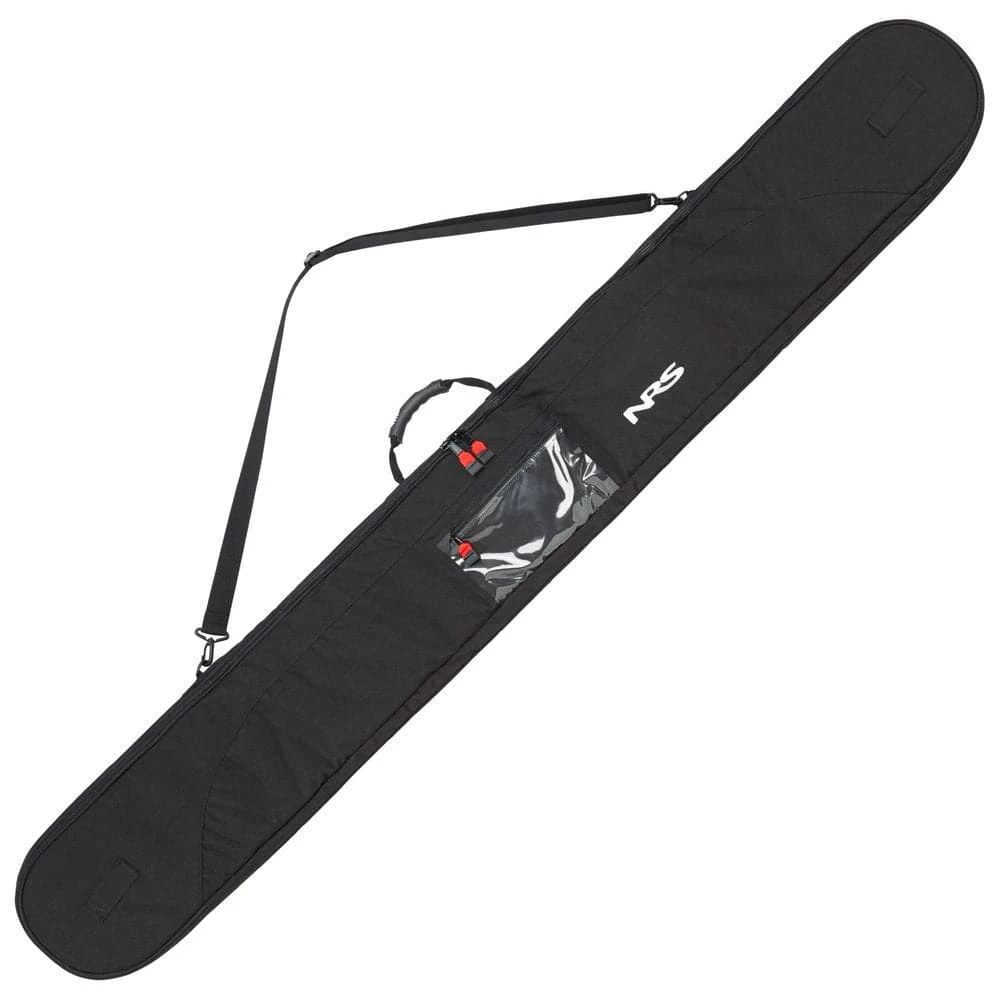The NRS SUP/Whitewater Kayak Paddle Bag is perfect for traveling with up to 3 paddles. With a padded fleece inner liner and durable Cordura outershell, your expensive paddles can travel in style. The blades are protected by pockets on each end, while the padded shoulder strap and center carrying handle make transportation easy. The bag will hold paddles up to 203 cm in length.